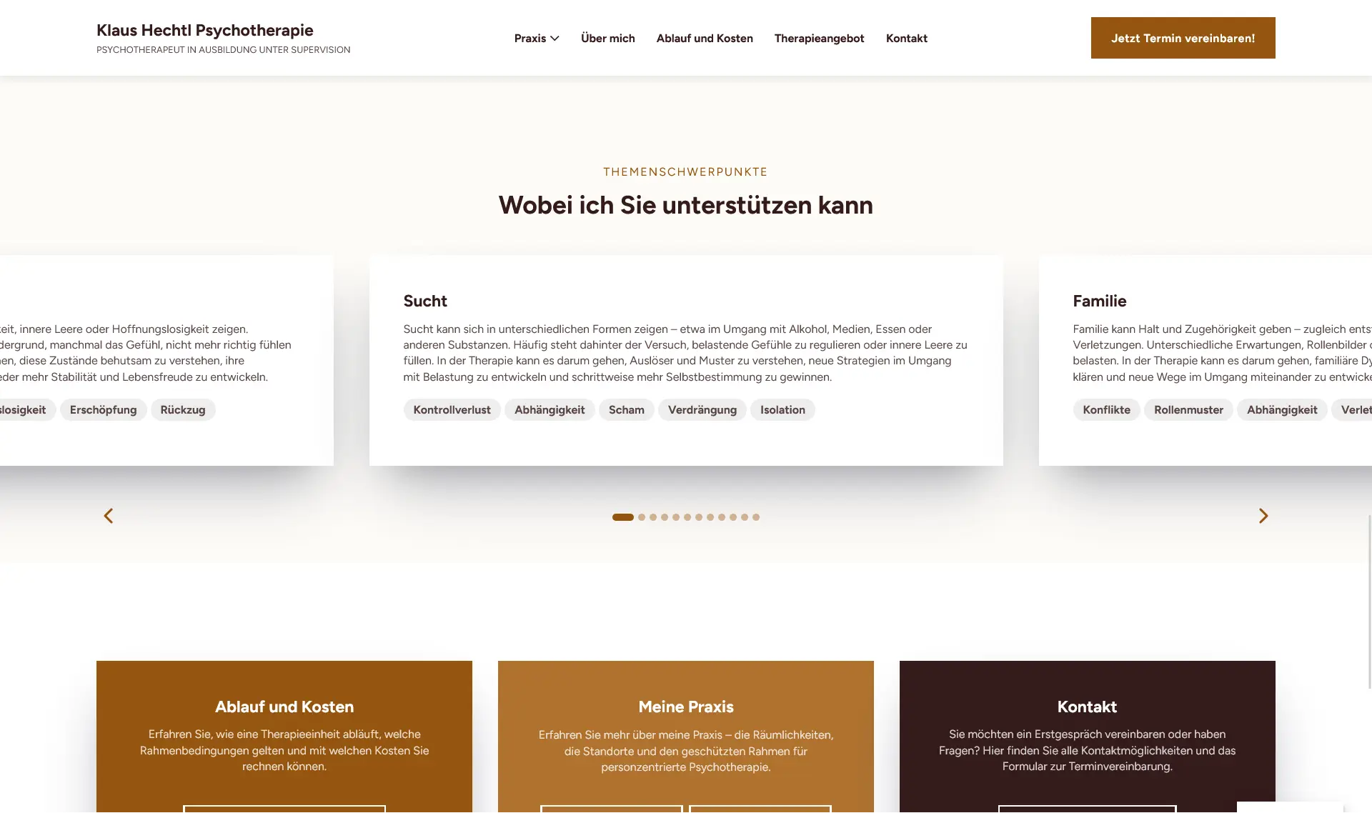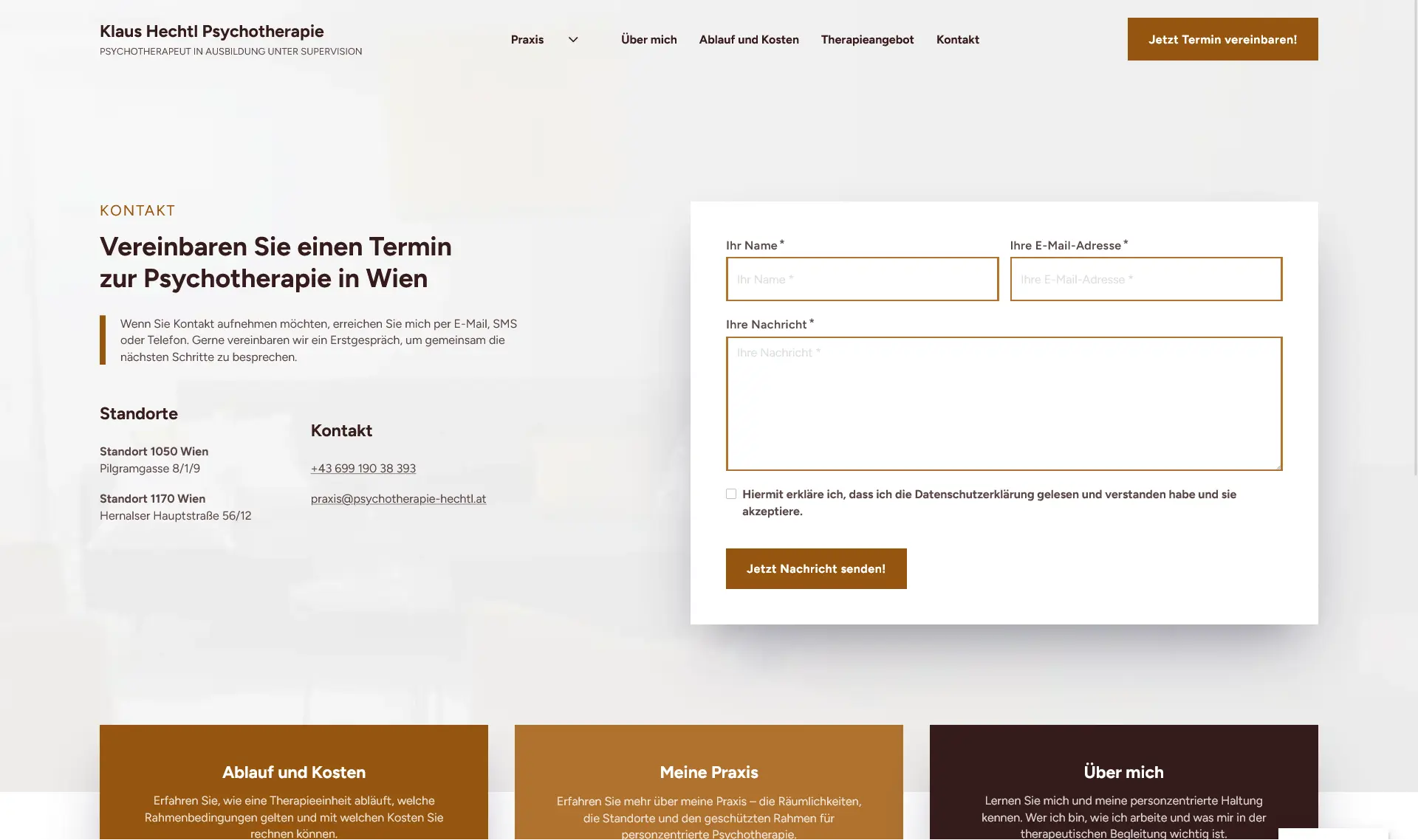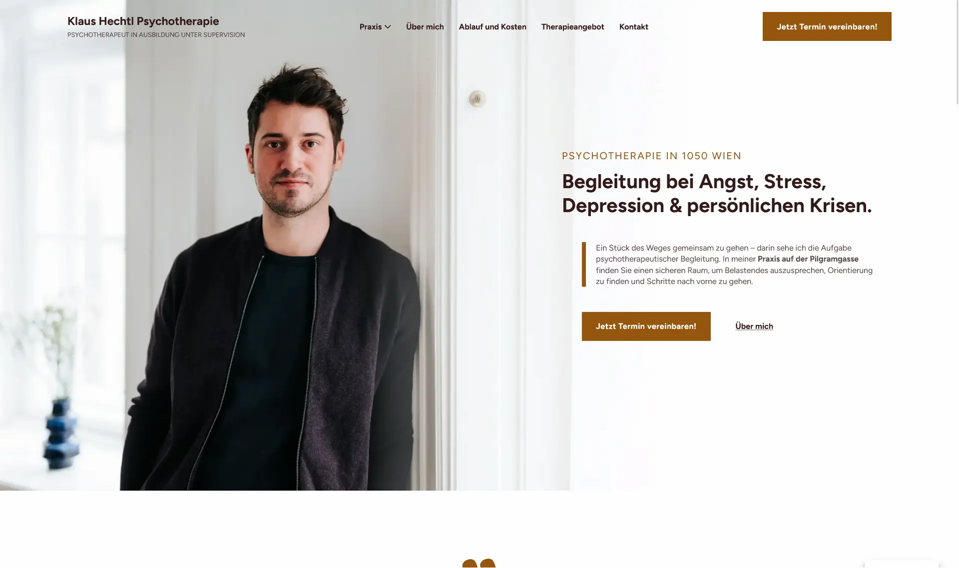 Für Psychotherapeut Klaus Hechtl entwickelte ich eine auffallend starke und suchmaschinenoptimierte Webseite, die seine beiden Praxen in Wien optimal sichtbar macht. Der Fokus lag auf einer klaren Informationsstruktur, einem seriösen Erscheinungsbild und einer nachhaltigen SEO-Strategie für langfristige Auffindbarkeit.
